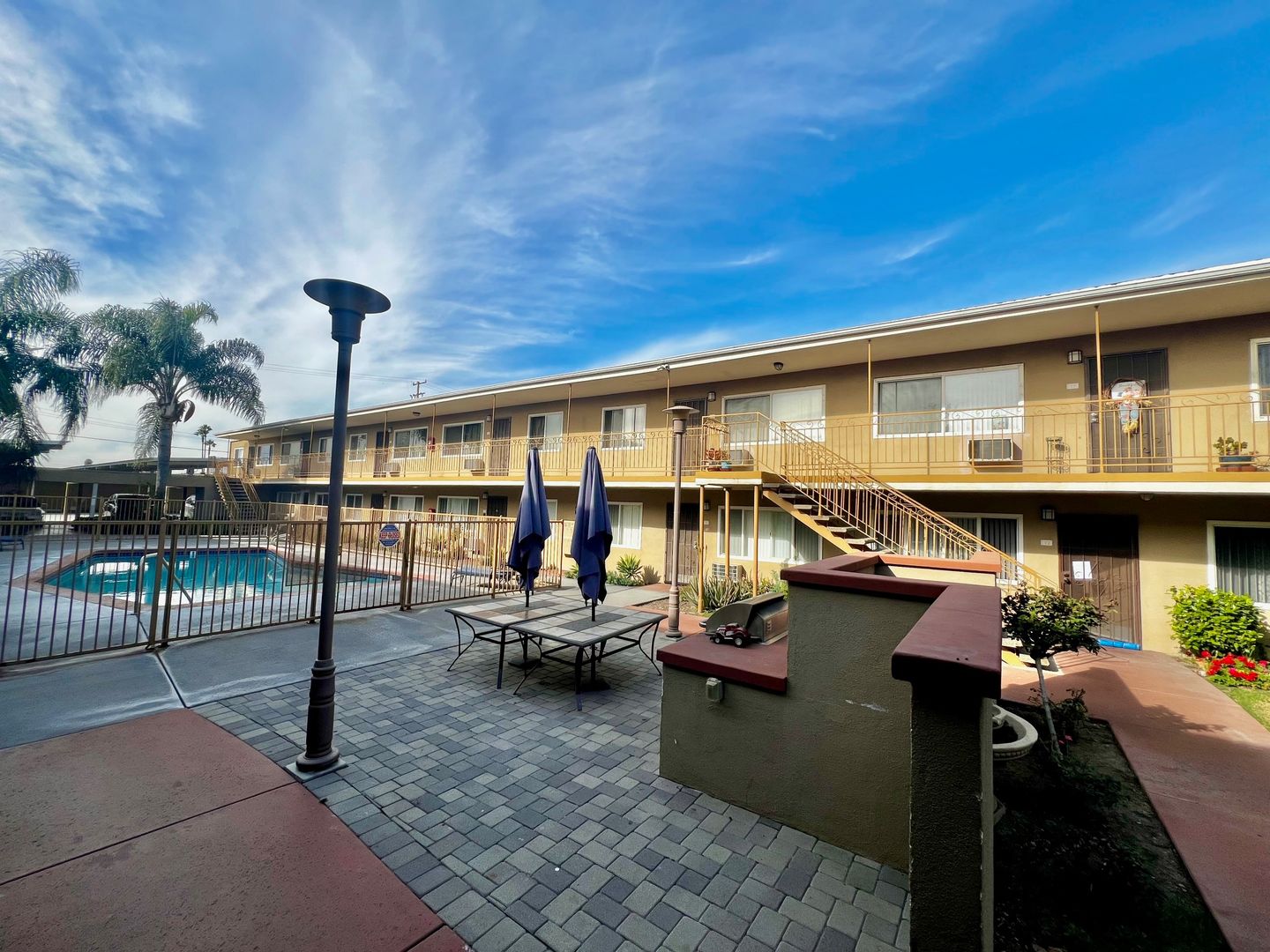 Remodeled 2 Bedrooms 1 Bathroom Apartment, new paint, new blinds, newer light fixtures, wall heater, gas stove, newer kitchen cabinets, newer countertops, 1 car parking, laundry onsite, Pool & BBQ area. Sorry no pets.