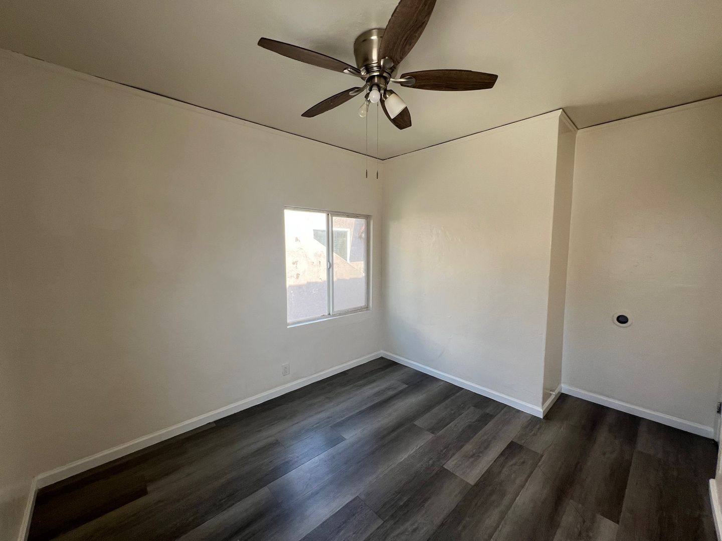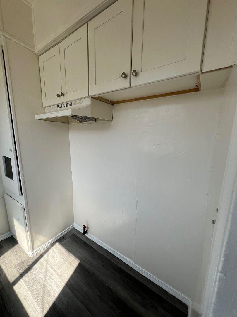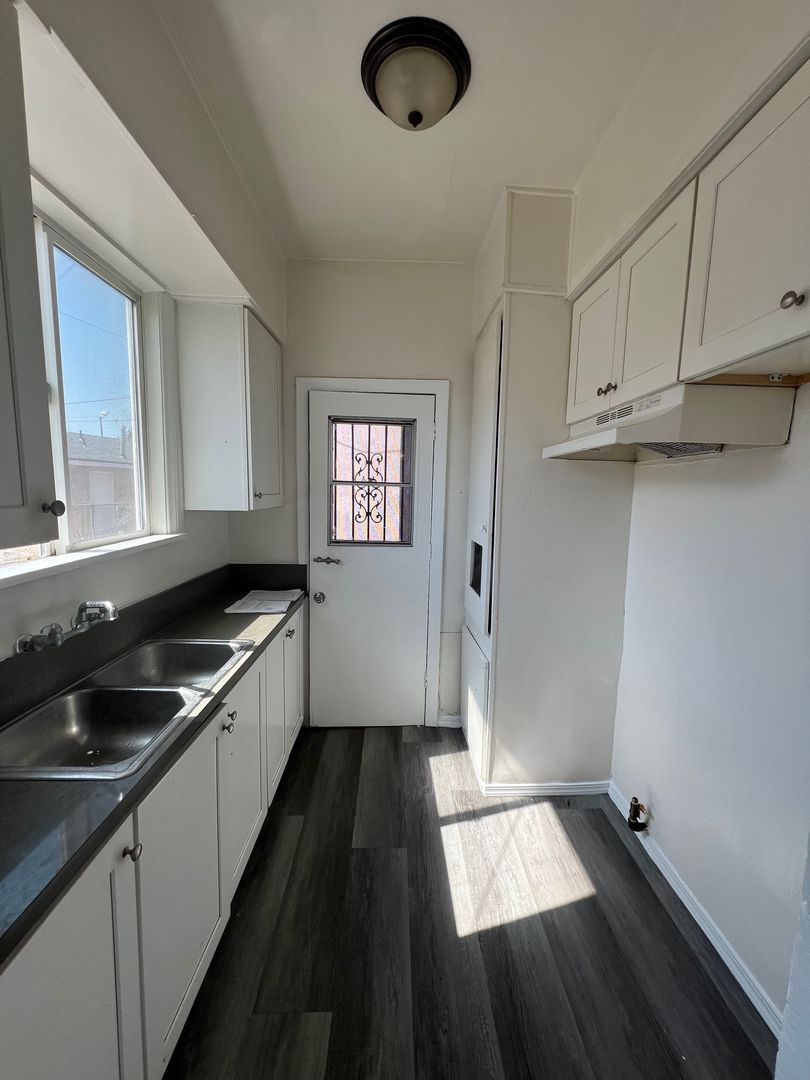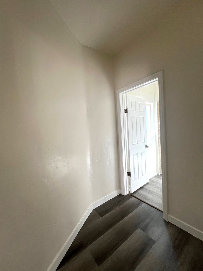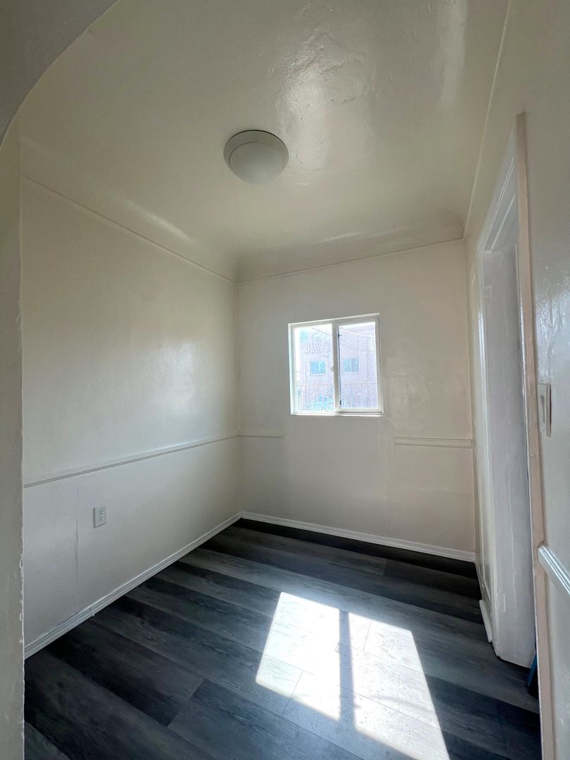 Downstairs 1 bedroom 1 bathroom Apartment, new paint, laminate wood flooring, ceiling fans, wall heater, street parking, laundry onsite, water & trash included.