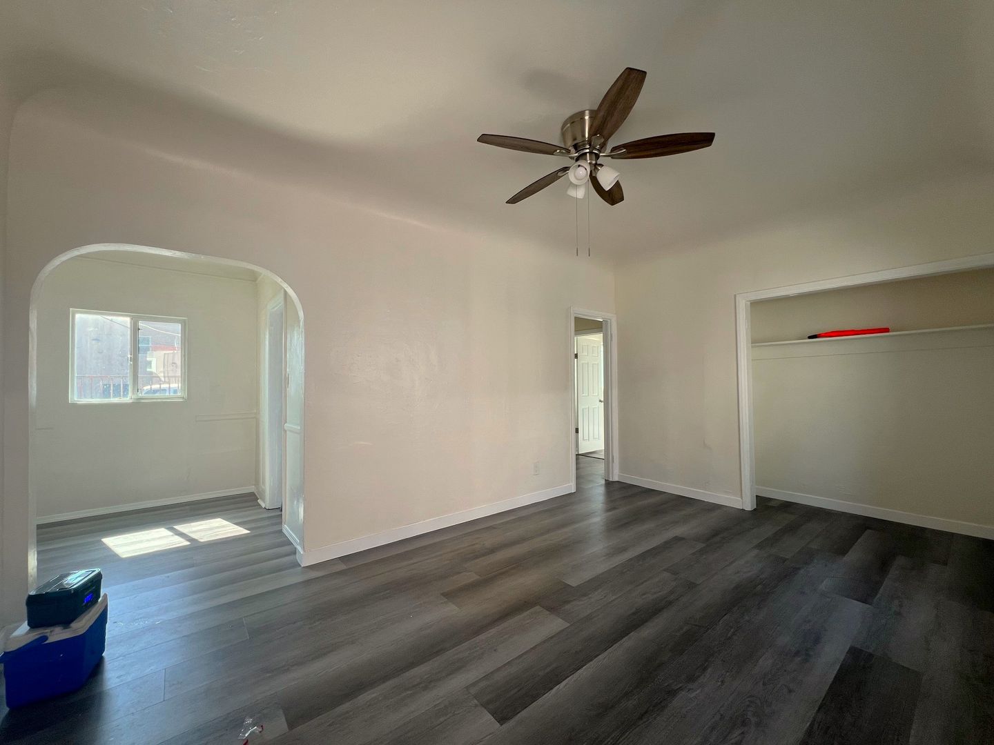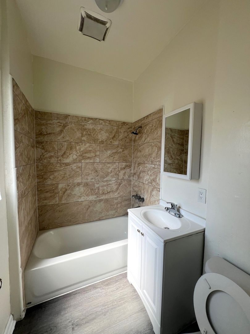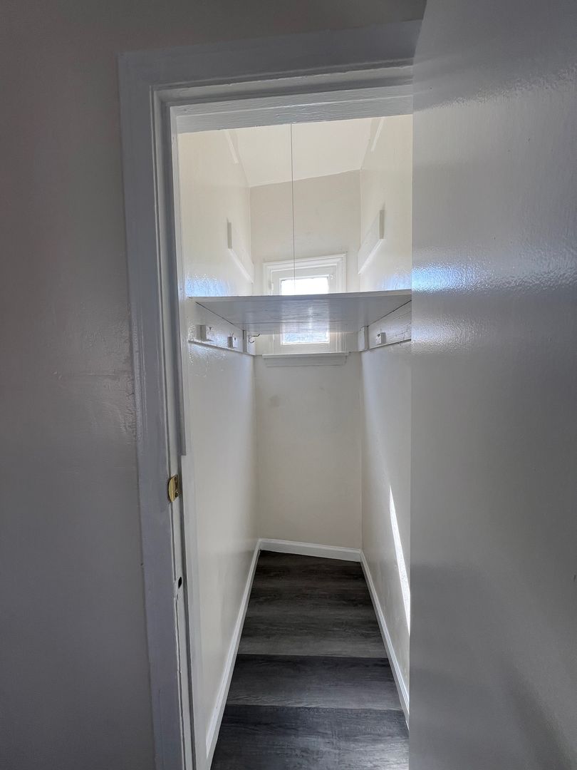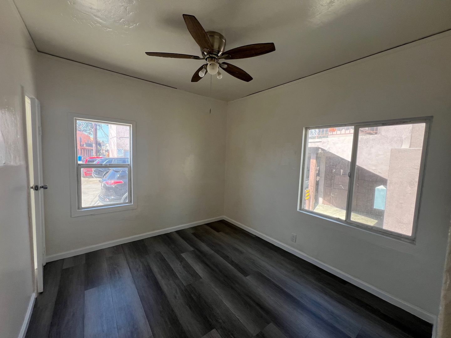 Downstairs 1 bedroom 1 bathroom Apartment, new paint, laminate wood flooring, ceiling fans, wall heater, street parking, laundry onsite, water & trash included.