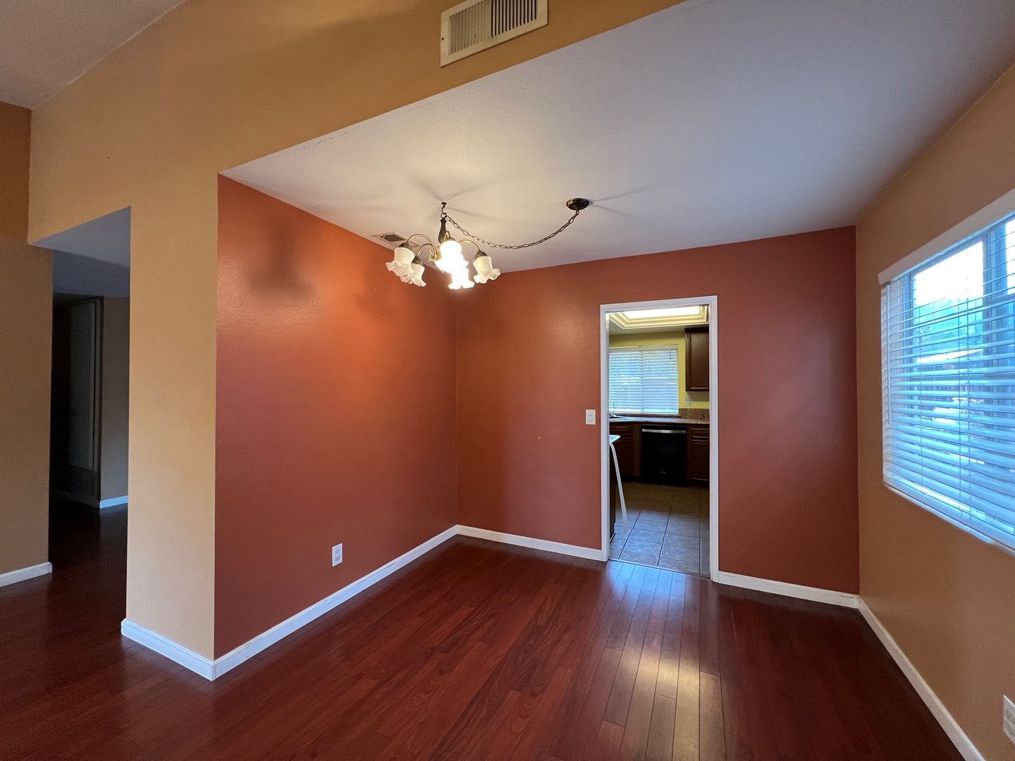 Single Story - 4 Bedrooms 2 Bathroom Home, 1710 sq. ft. with laminate wood flooring throughout, lots of light, living room and family room with fireplace, gas stove, dishwasher, built-in microwave, central ac/heating, washer/dryer hookups in the garage, main bedroom with private bathroom, backyard backs to a river bend.