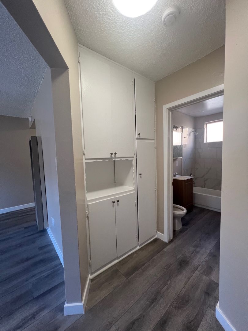 Recently updated downstairs unit featuring new flooring, fresh paint, and new blinds. The apartment offers a comfortable layout with a gas stove, ceiling fans, wall heater, and a hallway closet for added storage. Gas, water and trash are included, and you’ll have one dedicated parking space plus on-site laundry for convenience.
